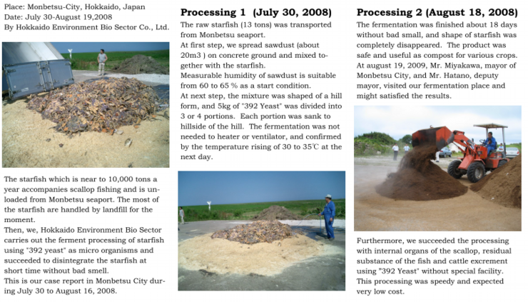 It mostly applies to marine waste (such as starfish, urchin shells, fish and scallop dregs) in our experiments.
