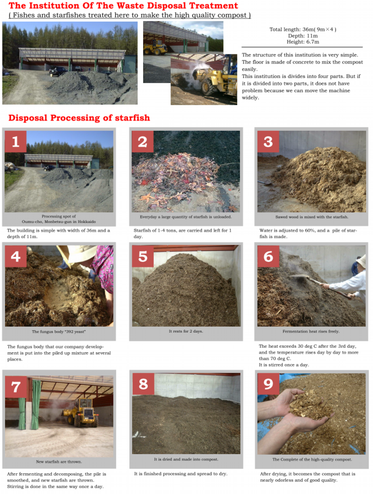 “392 yeast” can produce the composting of the full ripeness type without being controlled temperature from various waste drained from food processing ground or the cattle farmer in the full seasons. I believe that our products and business model are able to contribute the reproduction of the earth which continued being polluted with a chemical substance, and I would like to push forward development of the products positively. In addition, our bio-business manages to reach it until trial manufacture to sterilize Trichophyton (fungi cause of athlete’s foot) which is a pharmaceutical field by the tie-up with various research organizations. I can provide it as a medical product soon.